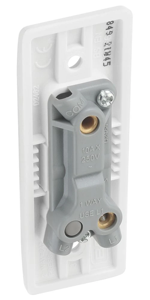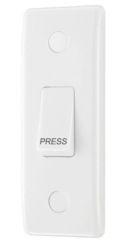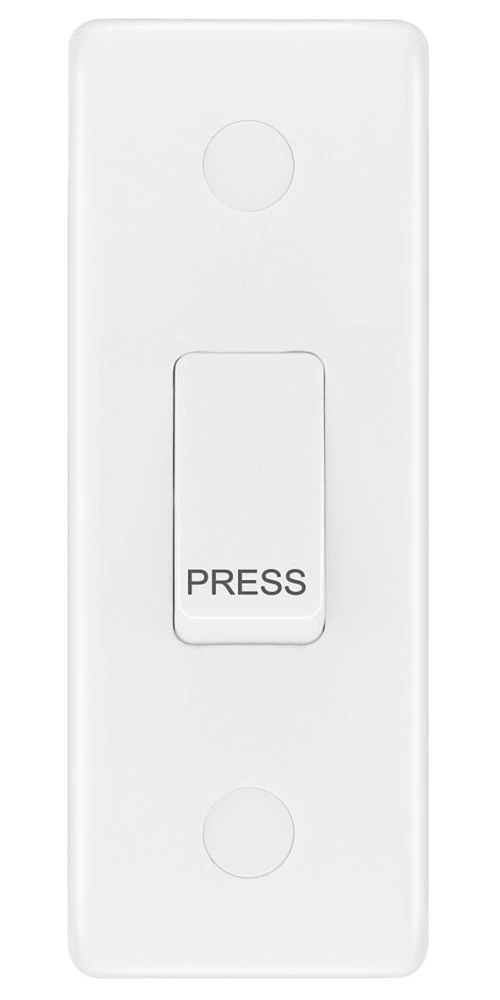 Marked ‘press’ and returns to original position after pressing. Ideal for door exit and bell circuits as can be wired to be normally open or normally closed. Moulded white front-plate has a high resistance to fading, discolouration and scratches, with inherent anti-microbial properties, reducing bacterial development and inhibiting the growth of of infectious diseases. Features soft rounded edges and screw-head covers for a sleek appearance.