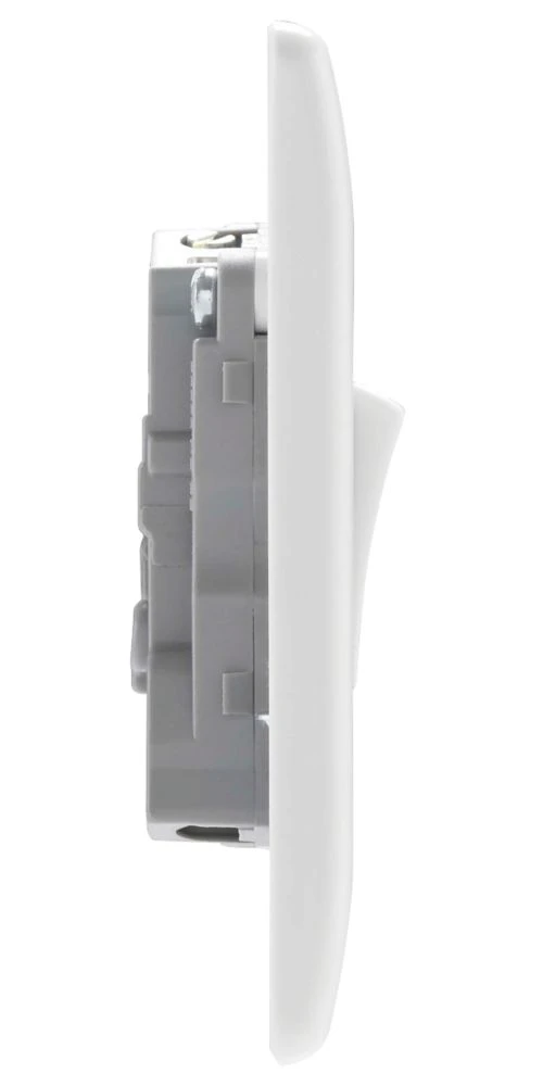 British General 800 Series 13A 1-Gang SP Switched Socket + 2.1A 2-Outlet Type A USB Charger White