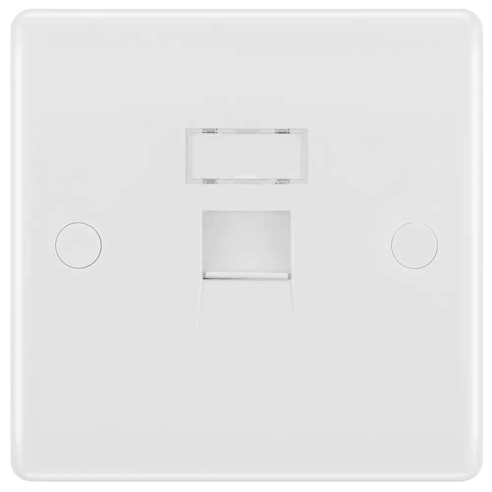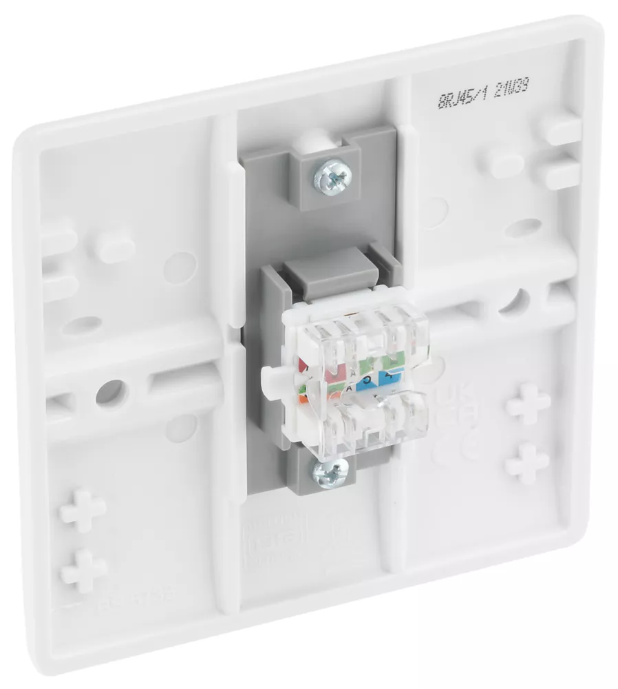 Uses an IDC terminal connection. Ideal for home and office, providing a networking outlet with ID window for identification. Designed for easy installation. Resistant to fading, discolouration and scratches. Manufactured using high grade thermoset Urea to reduce bacterial development and inhibit the growth of infectious diseases. Finished with softly rounded edges and screw caps for a sleek appearance.