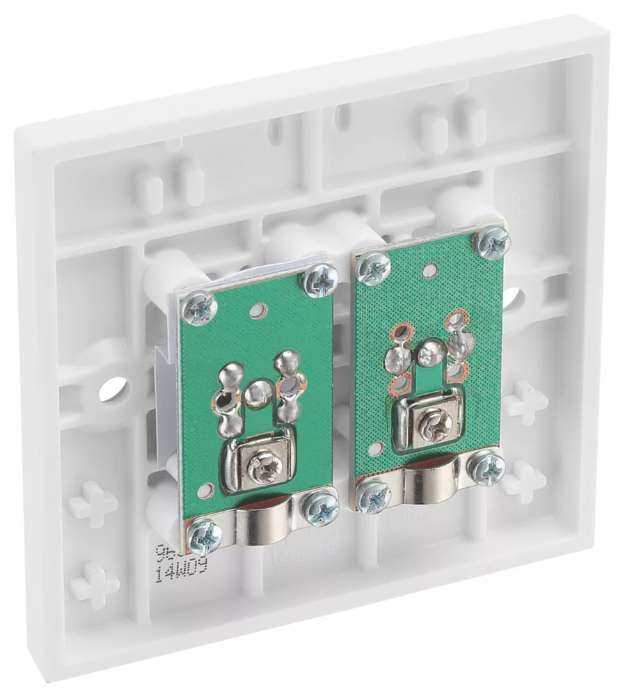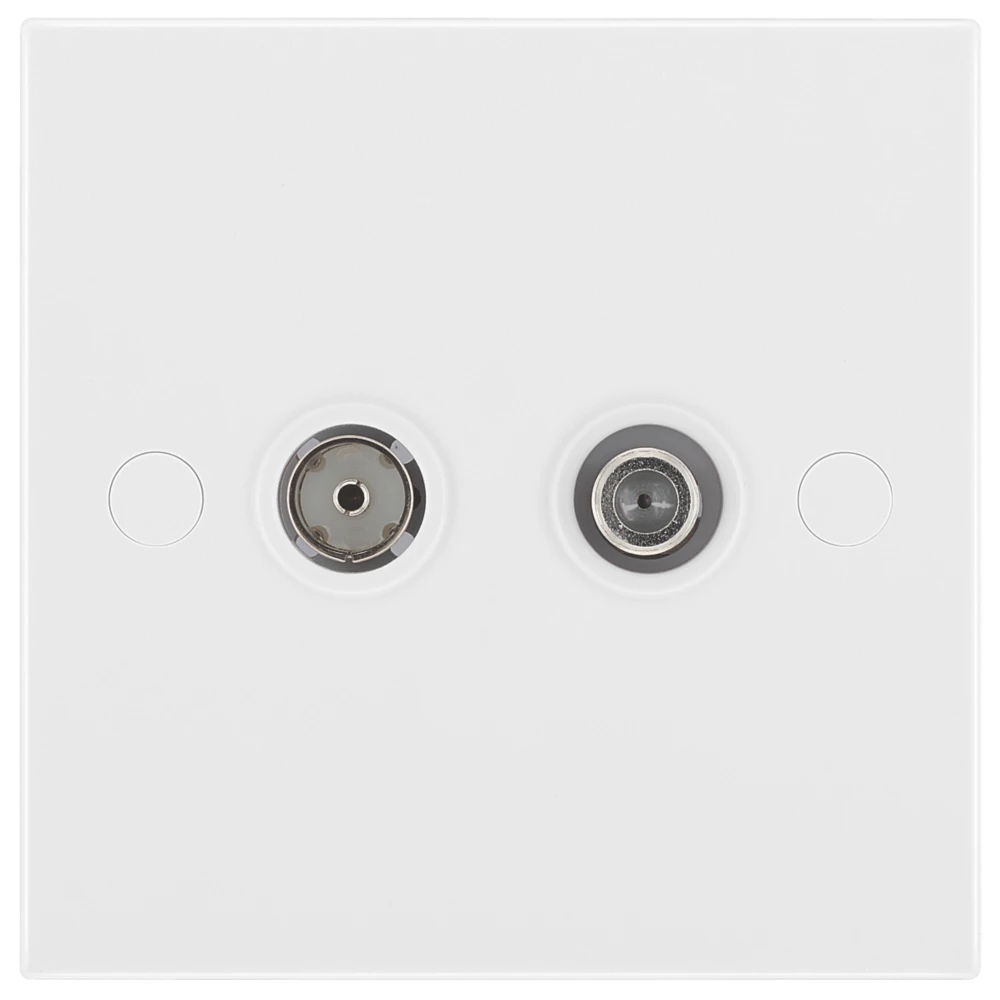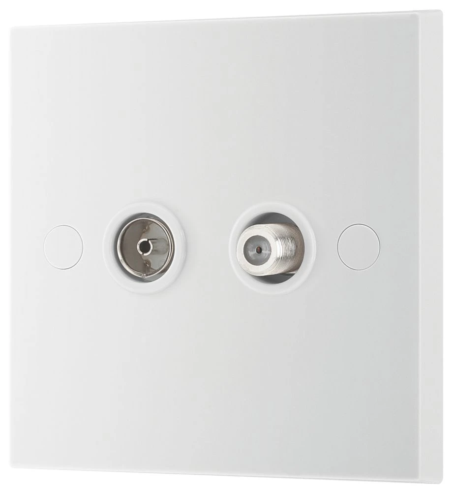Provides 1 outlet for a TV or FM aerial connection and 1 outlet for satellite connection. Front plate has inherent anti-microbial properties and offers high resistance to fading, discolouration and scratches. Finished with classic square edges and caps to conceal fitting screws.