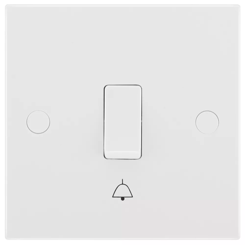 Ideal for visitors to announce their arrival where access is restricted, such as to office buildings or hospitals. Moulded white front-plate has a high resistance to fading, discolouration and scratches, with inherent anti-microbial properties, reducing bacterial development and inhibiting the growth of of infectious diseases. Features bell symbol printed below switch, classic square edges and screw-head covers for a sleek appearance.