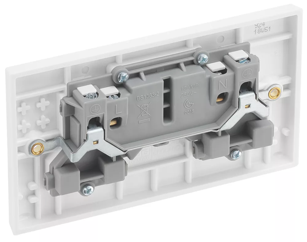 For standard 3-pin UK plugs. Always on when a plug is inserted, ideal for use with appliances that have control switches elsewhere, such as televisions and kettles. Resistant to fading, discolouration and scratches. Manufactured using high grade thermoset Urea to reduce bacterial development and inhibit the growth of infectious diseases. Designed with angled, in-line colour-coded terminals and captive screws for ease of installation. Finished with classic square edges and screw caps for a sleek appearance.