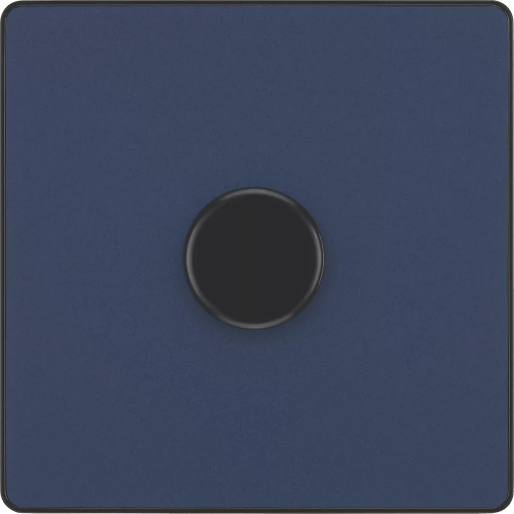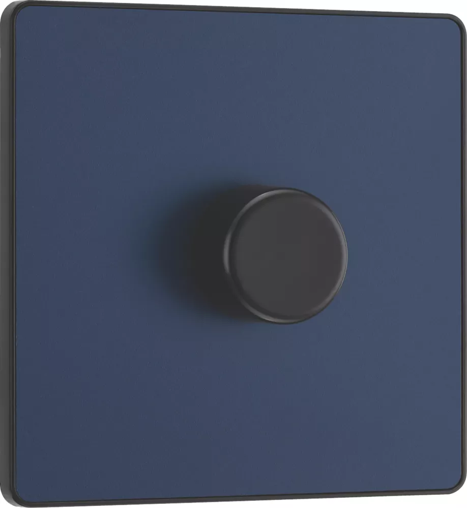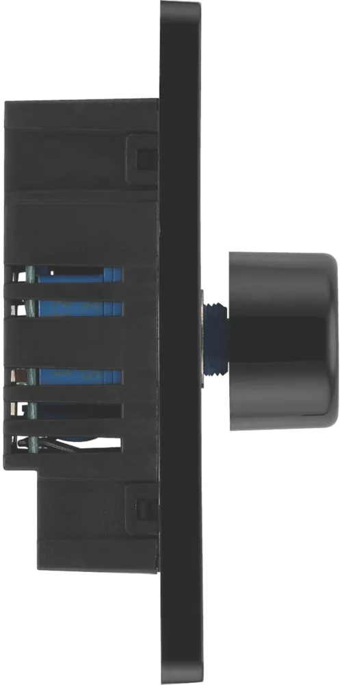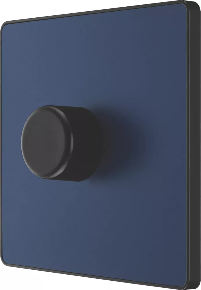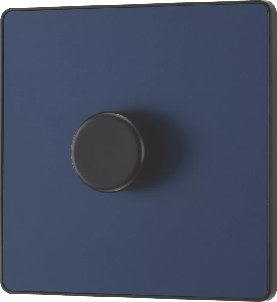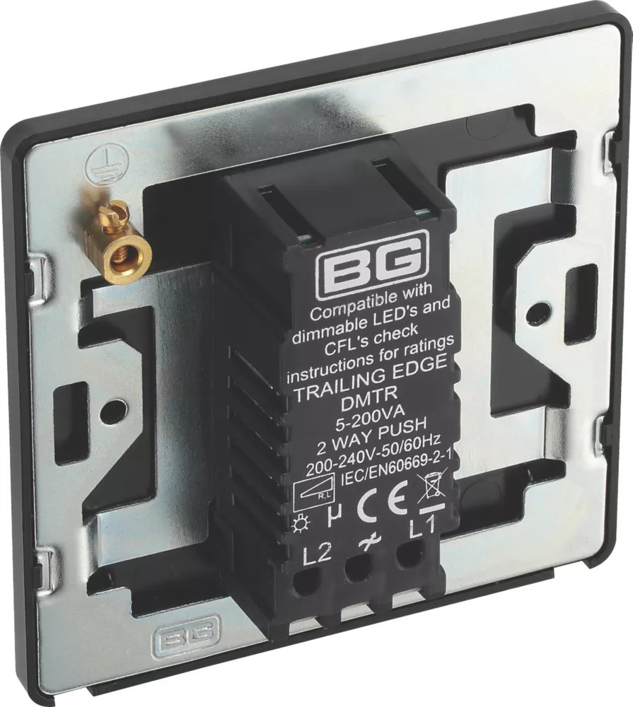 Evolve, trailing edge, single dimmer switch that controls light levels and sets mood. Intelligent electronic circuit monitors connected load and provides a soft-start with protection against thermal, current and voltage overload. Suitable for dimming LED, dimmable CFLs and traditional lighting. Soft-start brings the lights to a set level in around 1 second and extends lamp life. Silent operation means no noise when dimming, while support for low wattage lamps eliminates flicker. Low profile screwless flat plate that clips on and off. Ideal for modern interiors.