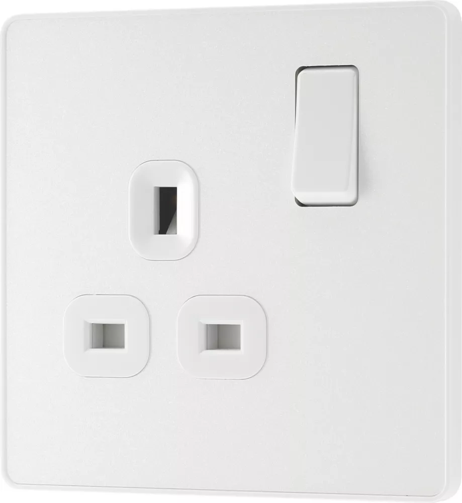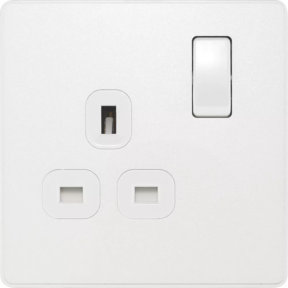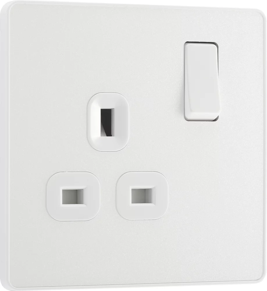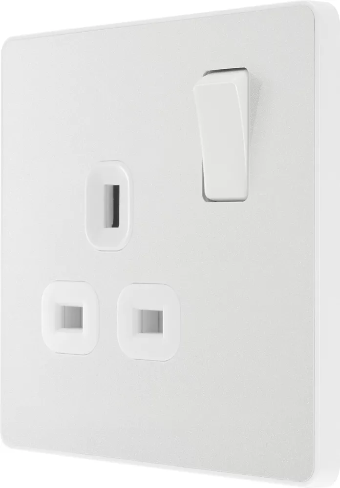 British General Evolve 13A 1-Gang SP Switched Socket Pearlescent White With White Inserts