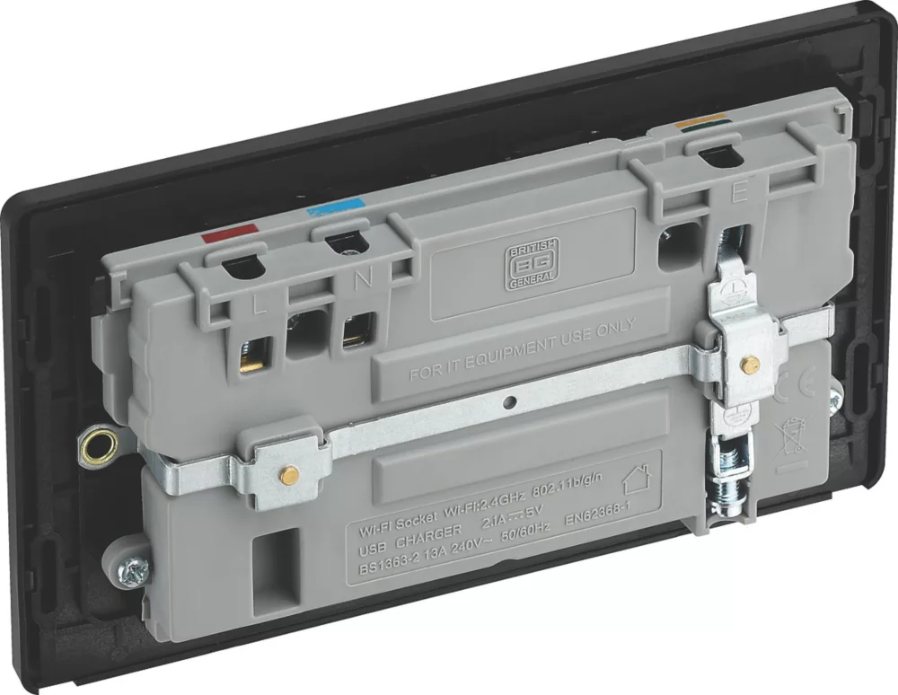 Double power socket with integrated WiFi extender. Eliminates dead spots and works with all wireless broadband routers to expand WiFi coverage.