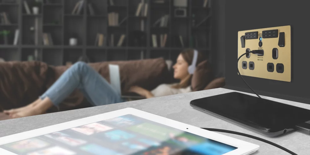 Double power socket with integrated WiFi extender. Eliminates dead spots and works with all wireless broadband routers to expand WiFi coverage.