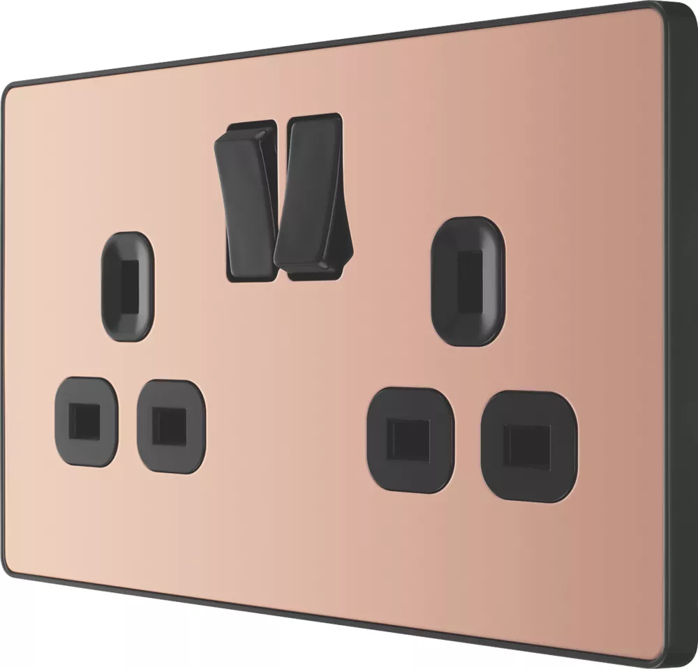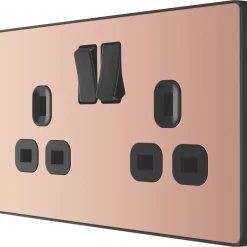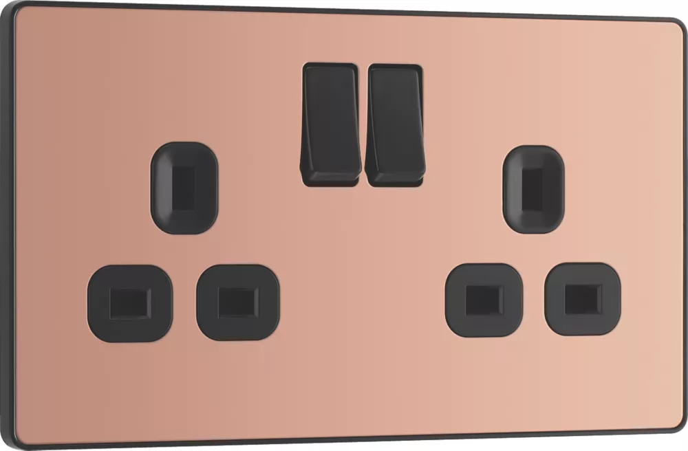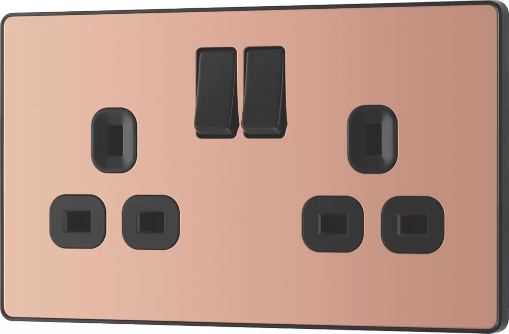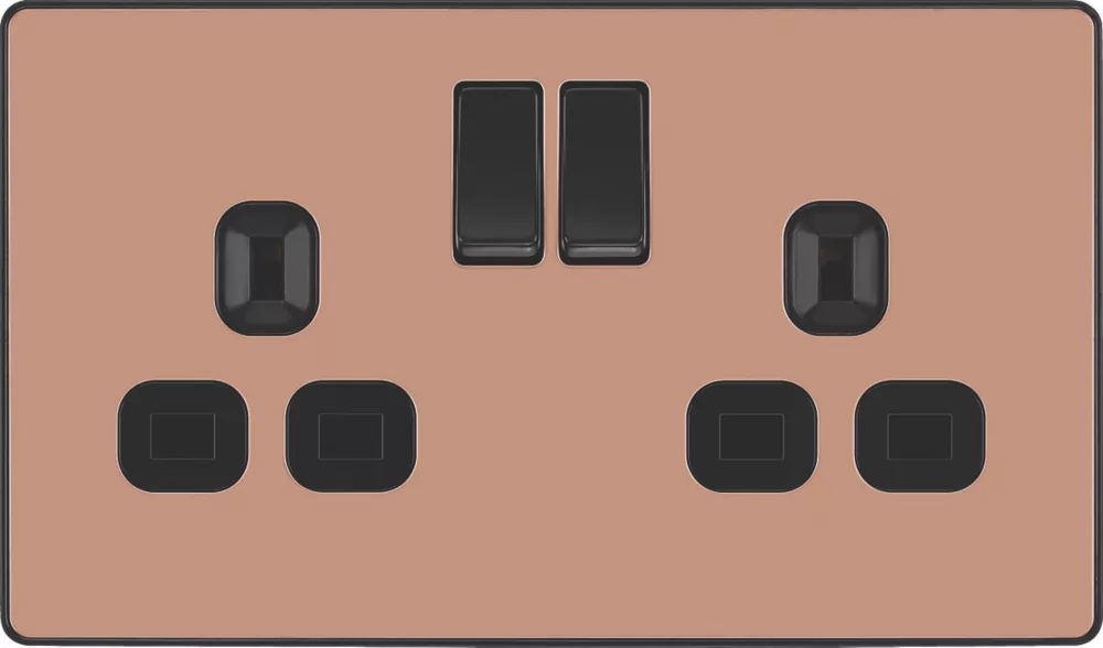 British General Evolve 13A 2-Gang SP Switched Socket Copper With Black Inserts