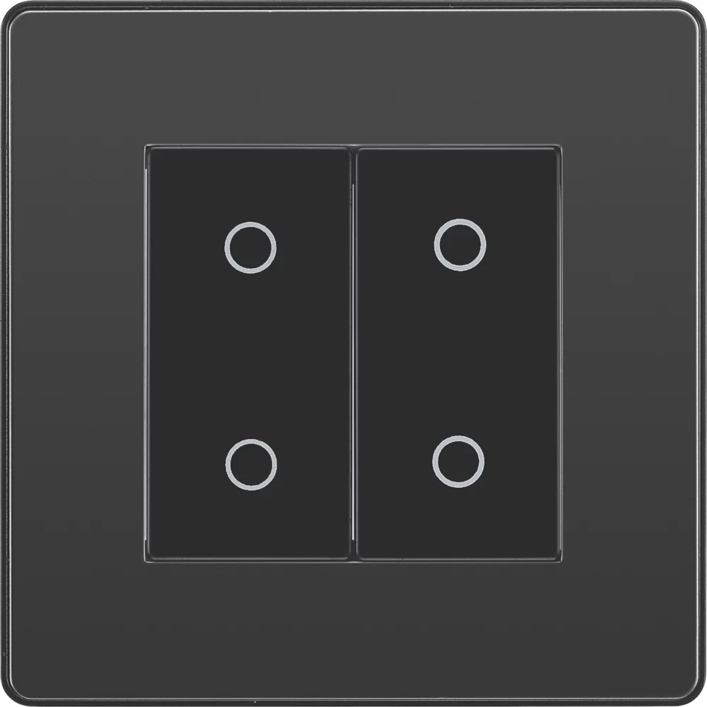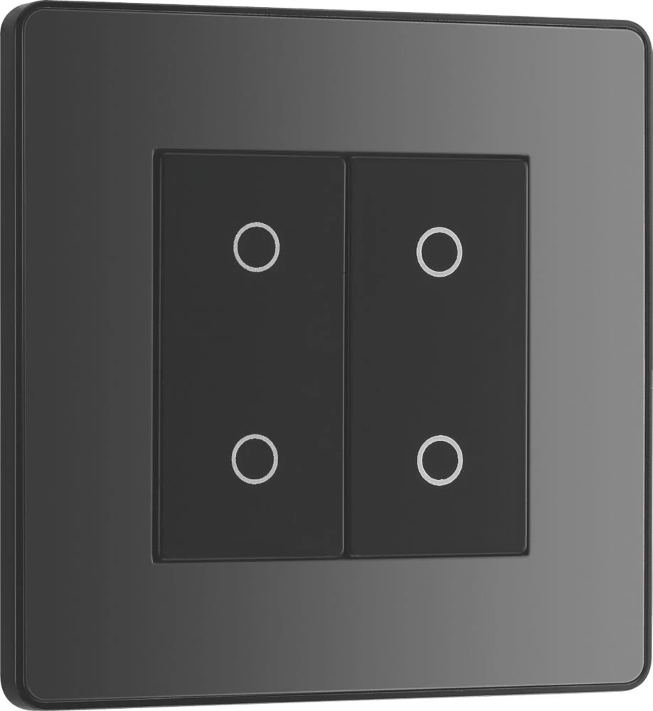 Evolve double secondary touch dimmer switch that controls light levels and sets mood. Must be in the same circuit as a master touch dimmer. Intelligent electronic circuit monitors the connected load and provides a soft-start with protection against thermal, current and voltage overload. Suitable for dimming LED, dimmable CFLs and traditional lighting. Soft-start brings the lights to a set level in around 1 second and extends the lamp life. Silent operation means no noise when dimming, while support for low wattage lamps eliminates flicker. Low profile screwless flat plate that clips on and off, ideal for modern interiors.
