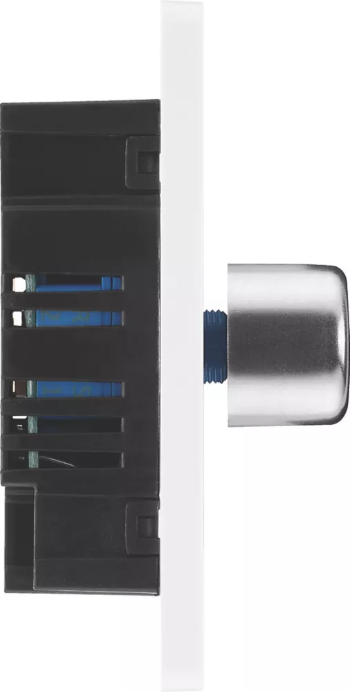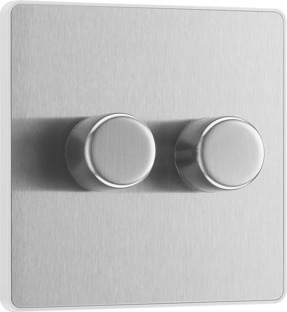 British General Evolve 2-Gang 2-Way LED Trailing Edge Double Push Dimmer With Rotary Control Brushed Steel With White Inserts