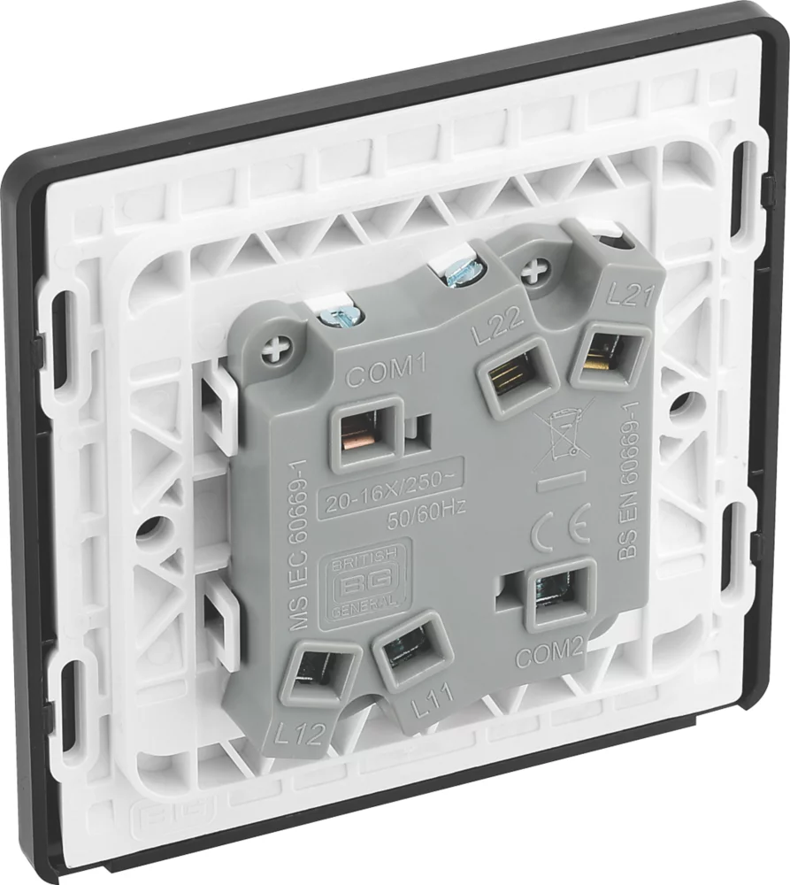 Offers ability to operate 2 different lights, while 2-way switching allows second switch to be added to circuit to operate same light from another location (e.g. at top and bottom of stairs). Features wide rocker and low profile, screwless flat plate that clips on and off, making it ideal for modern interiors.