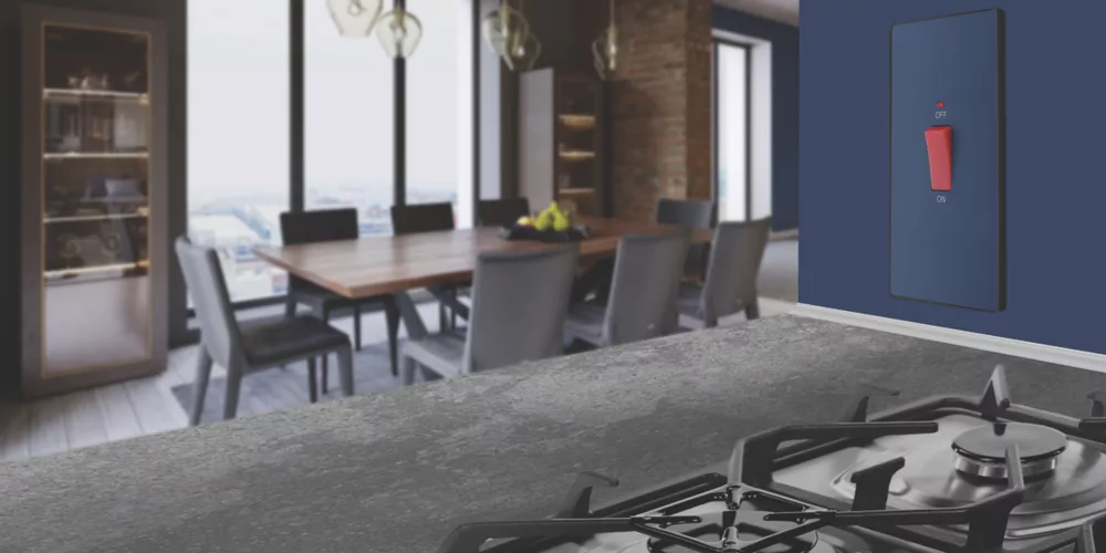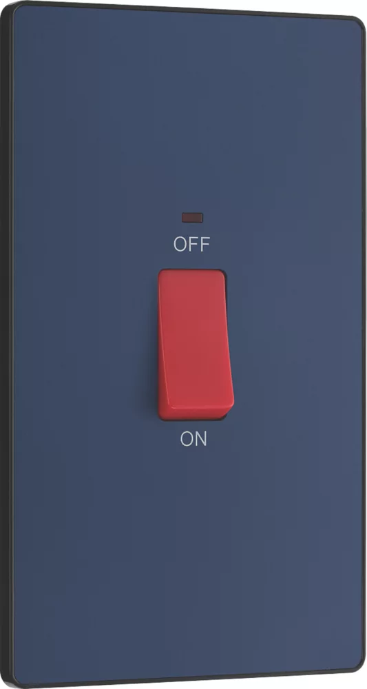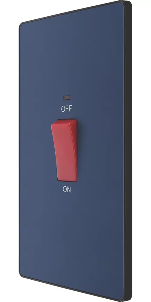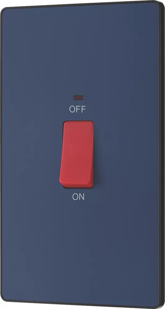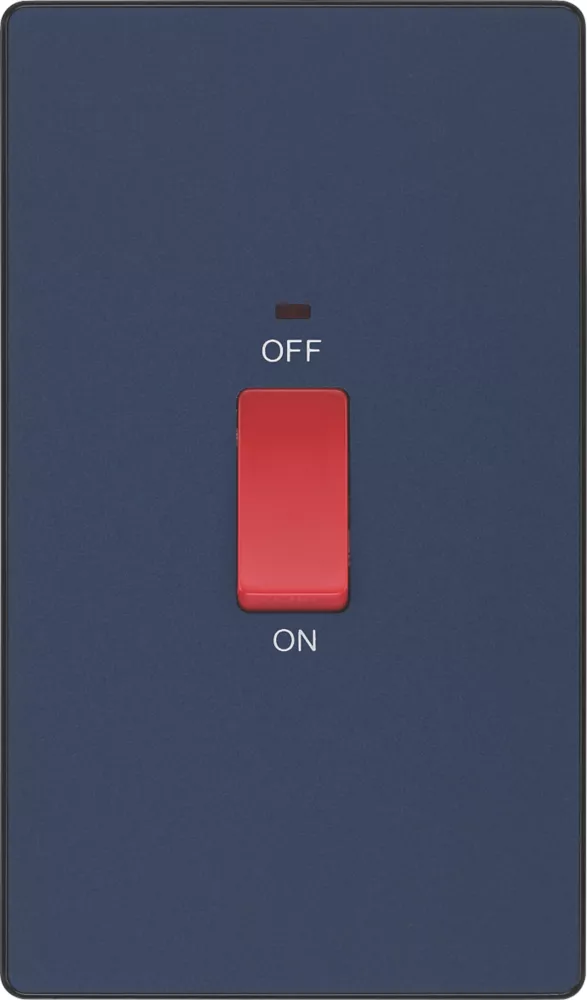British General Evolve 45A 1-Gang 2-Pole Cooker Switch Blue With LED With Black Inserts