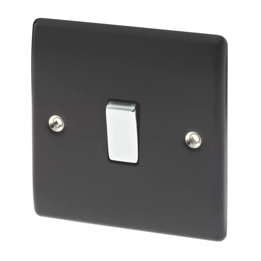 British General Nexus Metal 13A 1-Gang DP Switched Plug Socket Brushed Iridium With Black Inserts