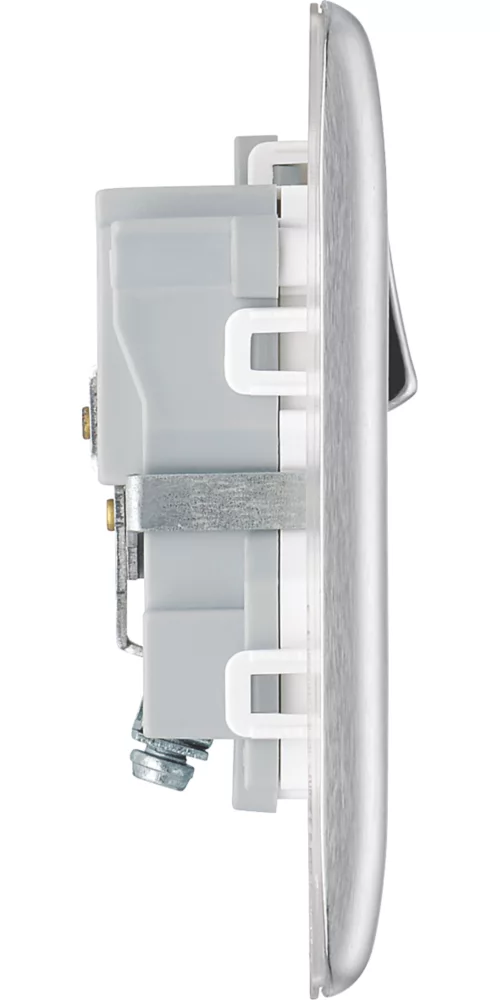 Ideal retro-fit replacement for existing sockets. Twin earth fitted as standard for high integrity circuits. Features moisture control gasket, preventing tarnishing from new plaster, no visible plastic around the switch and sleek and slim premium metal with softly rounded edges for a luxurious finish.