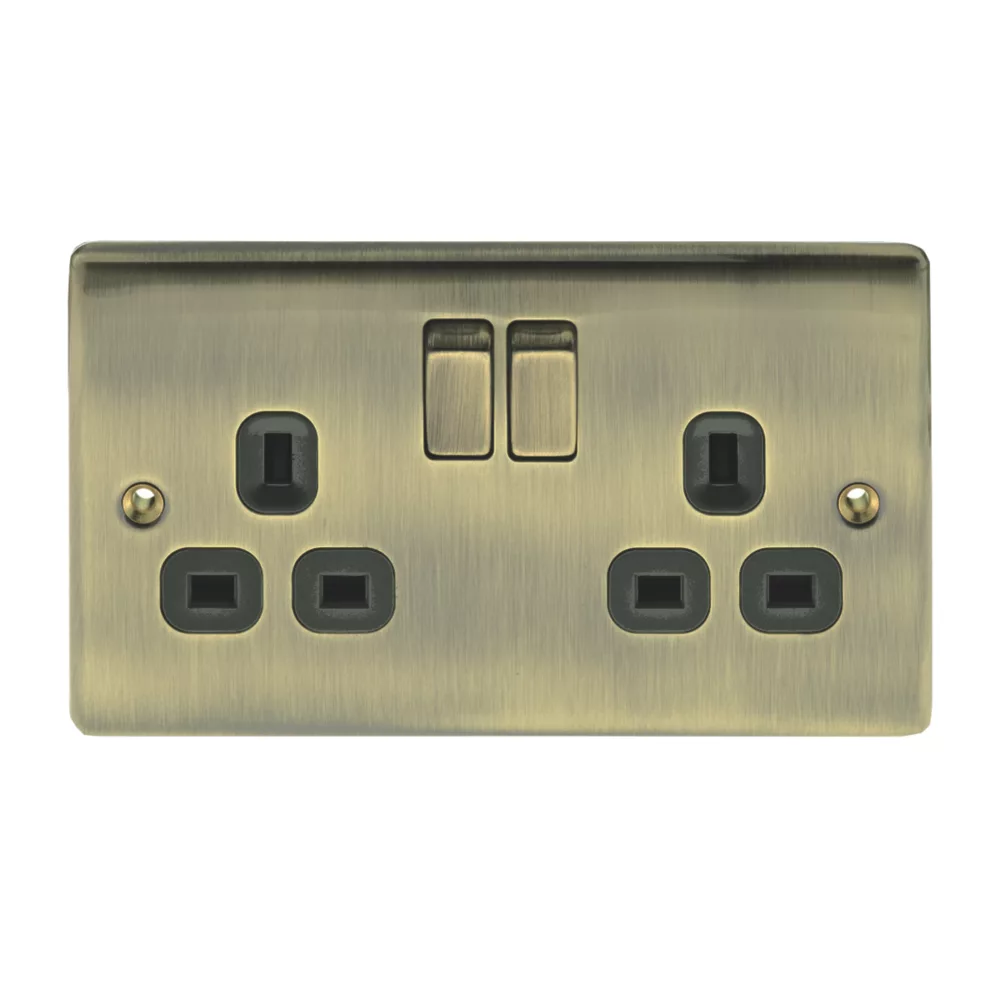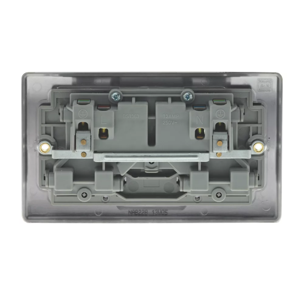 British General Nexus Metal 13A 1-Gang DP Switched Plug Socket Brushed Iridium With Black Inserts