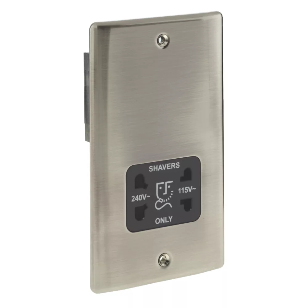 British General Nexus Metal 13A 1-Gang DP Switched Plug Socket Brushed Iridium With Black Inserts