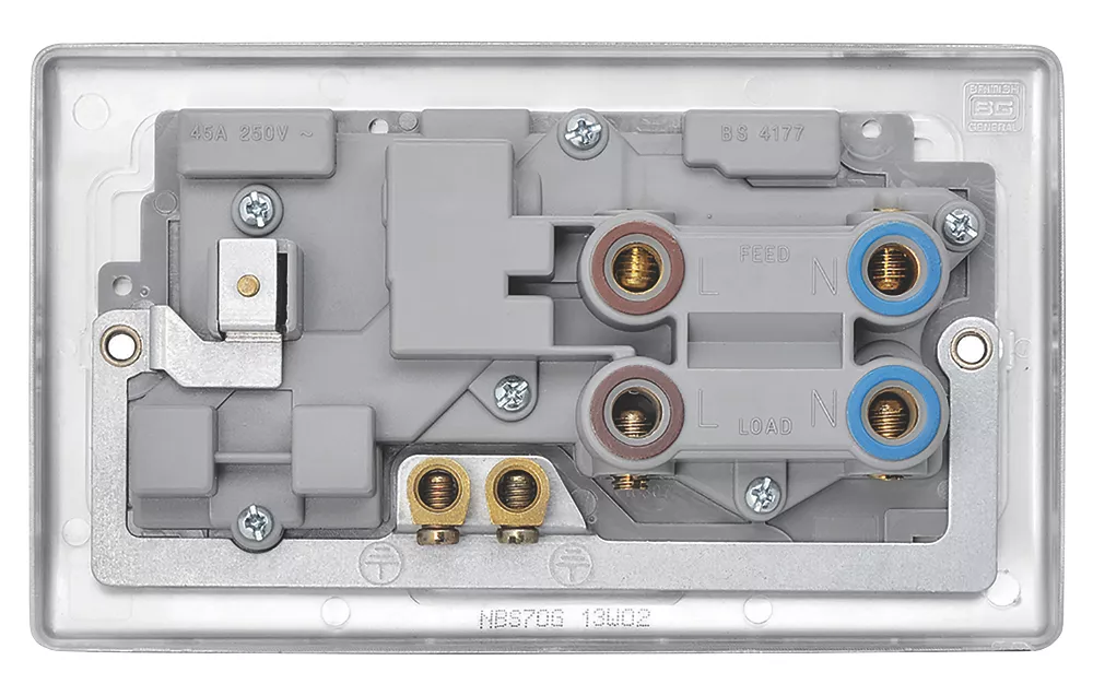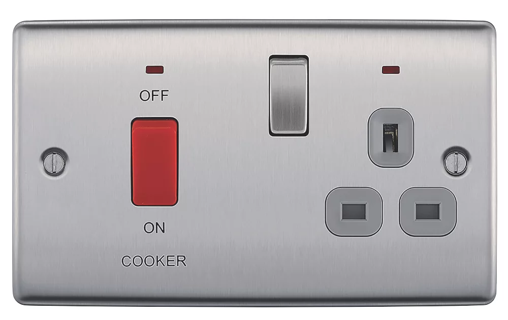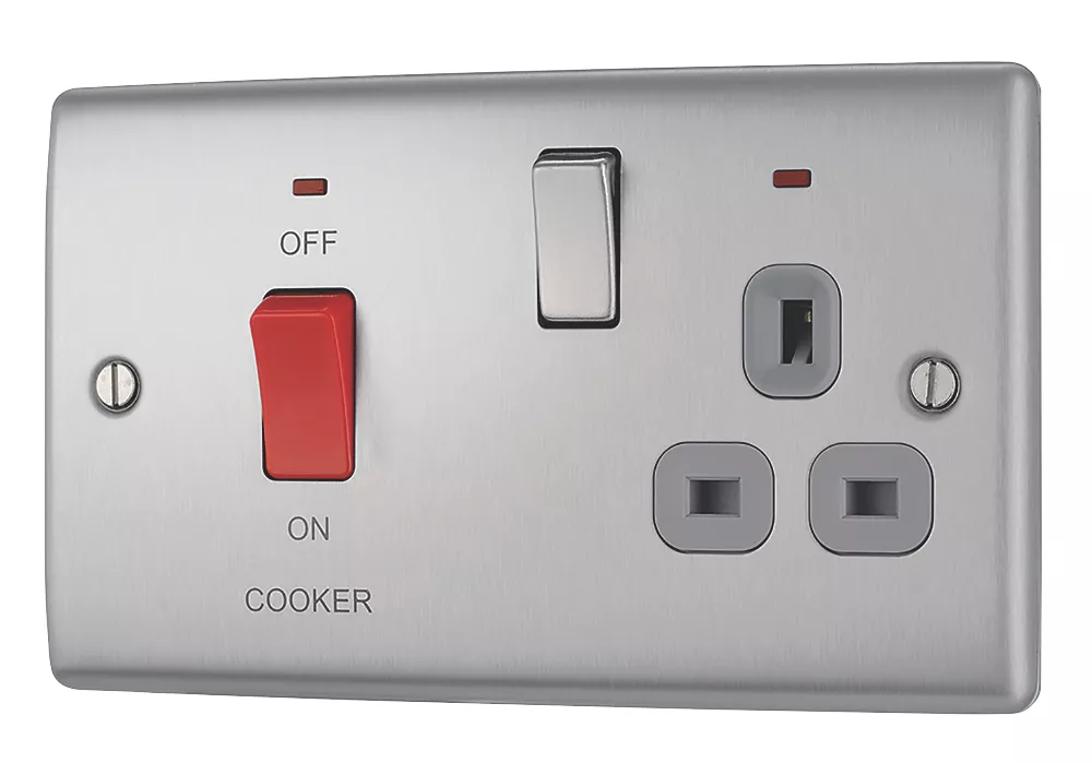 Slim profile 45A cooker switch and 13A switched socket with anti-fingerprint coating.