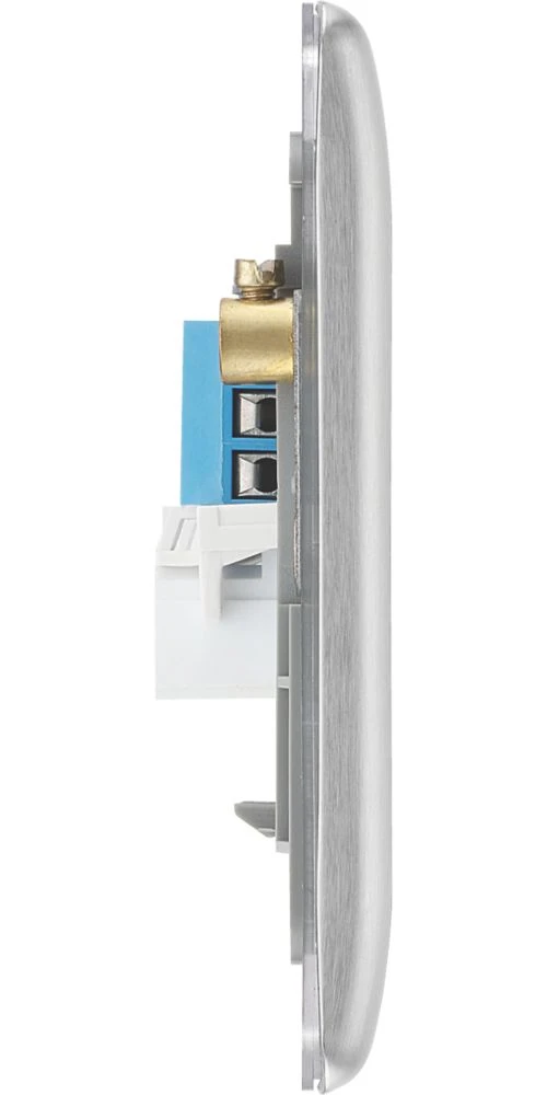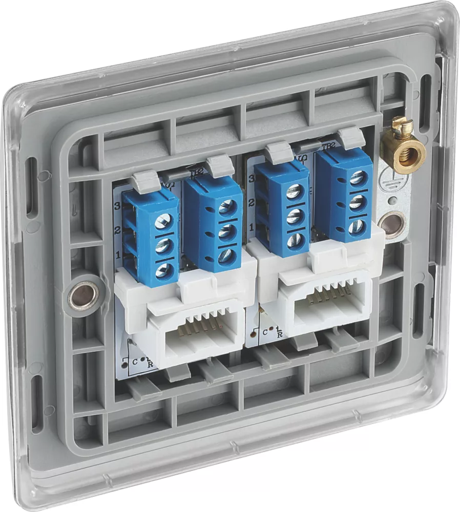 Uses a screw terminal connection and can be used for additional telephone points which feed from the master telephone socket. Features moisture control gasket to prevent tarnishing from new plaster. Finished with anti-fingerprint lacquer and softly rounded edges for a sleek appearance.