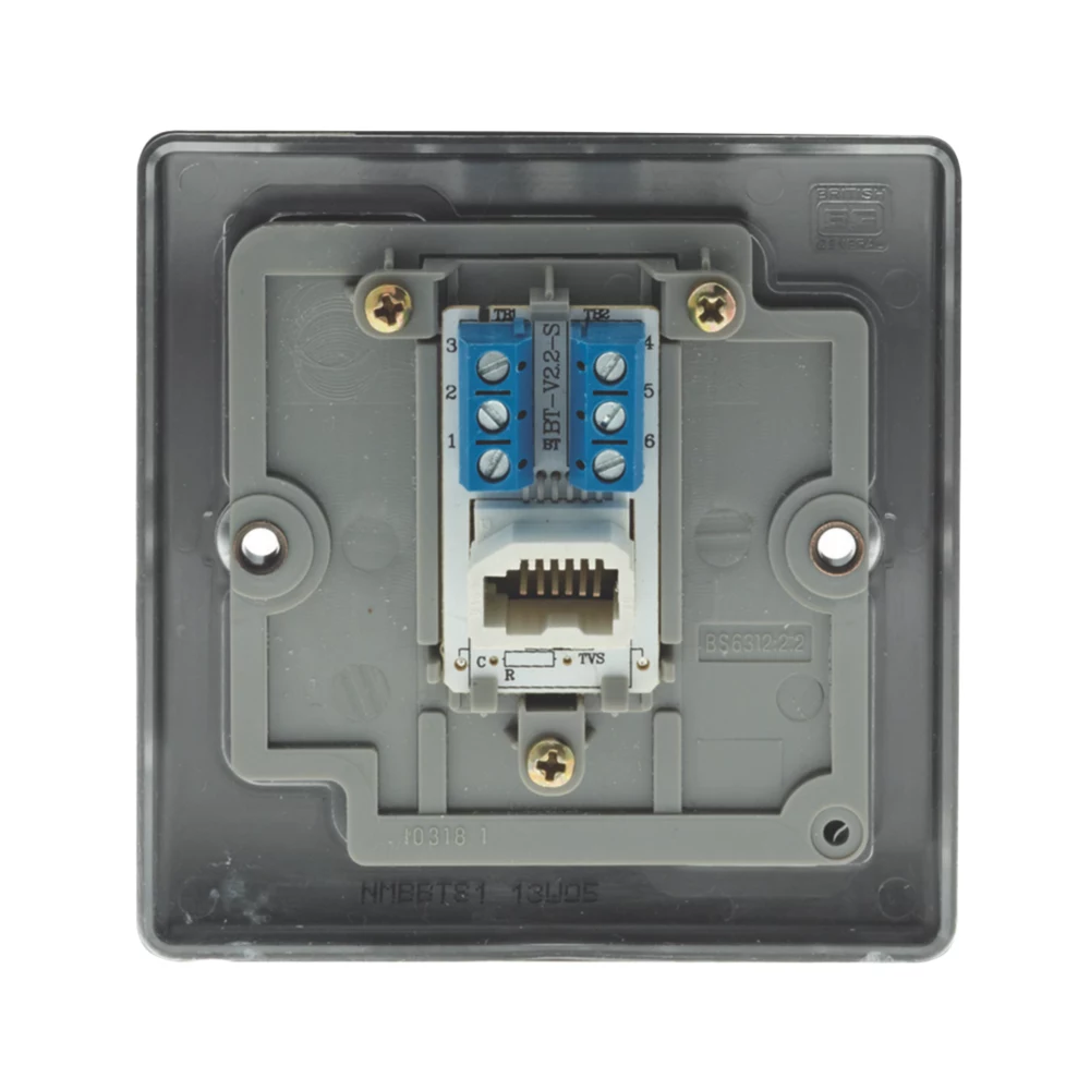 British General Nexus Metal 13A 1-Gang DP Switched Plug Socket Brushed Iridium With Black Inserts