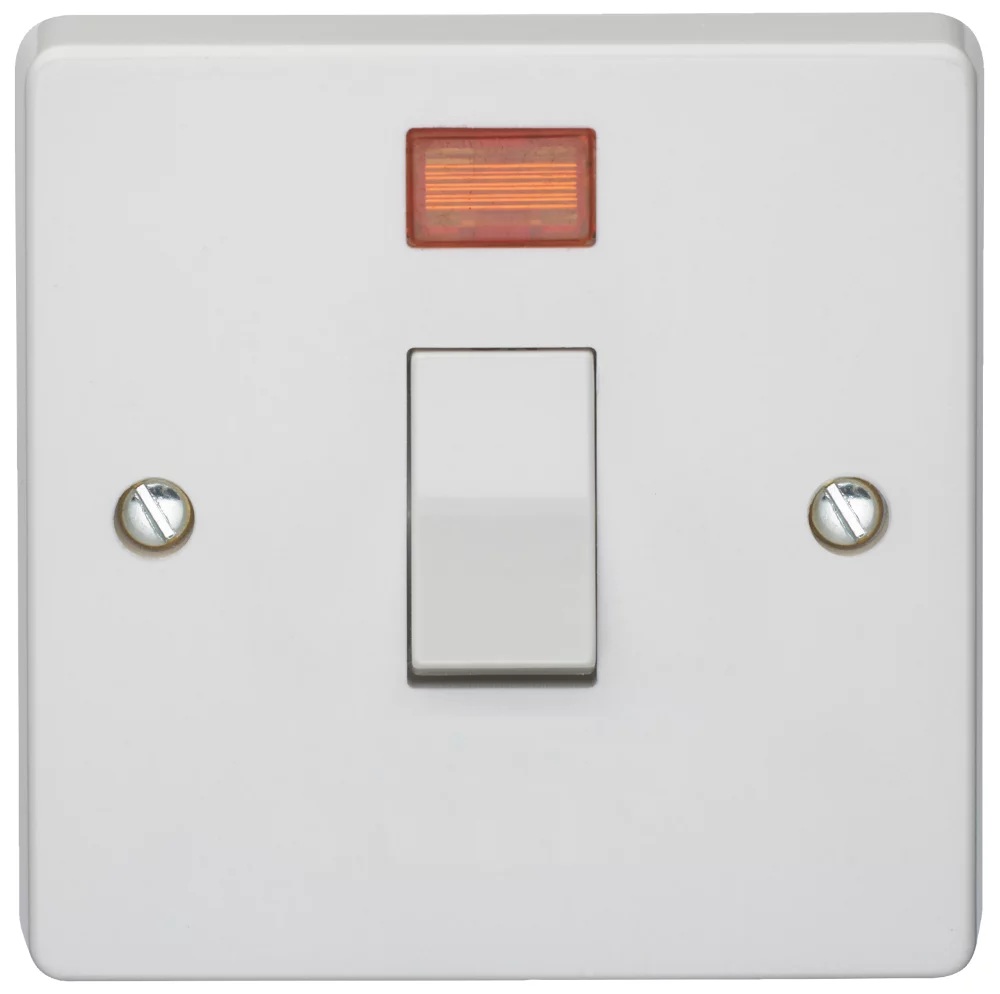 Fitted with knockout position in bottom edge and 2 earthing terminals. Square-edged profile. Neon indicator.