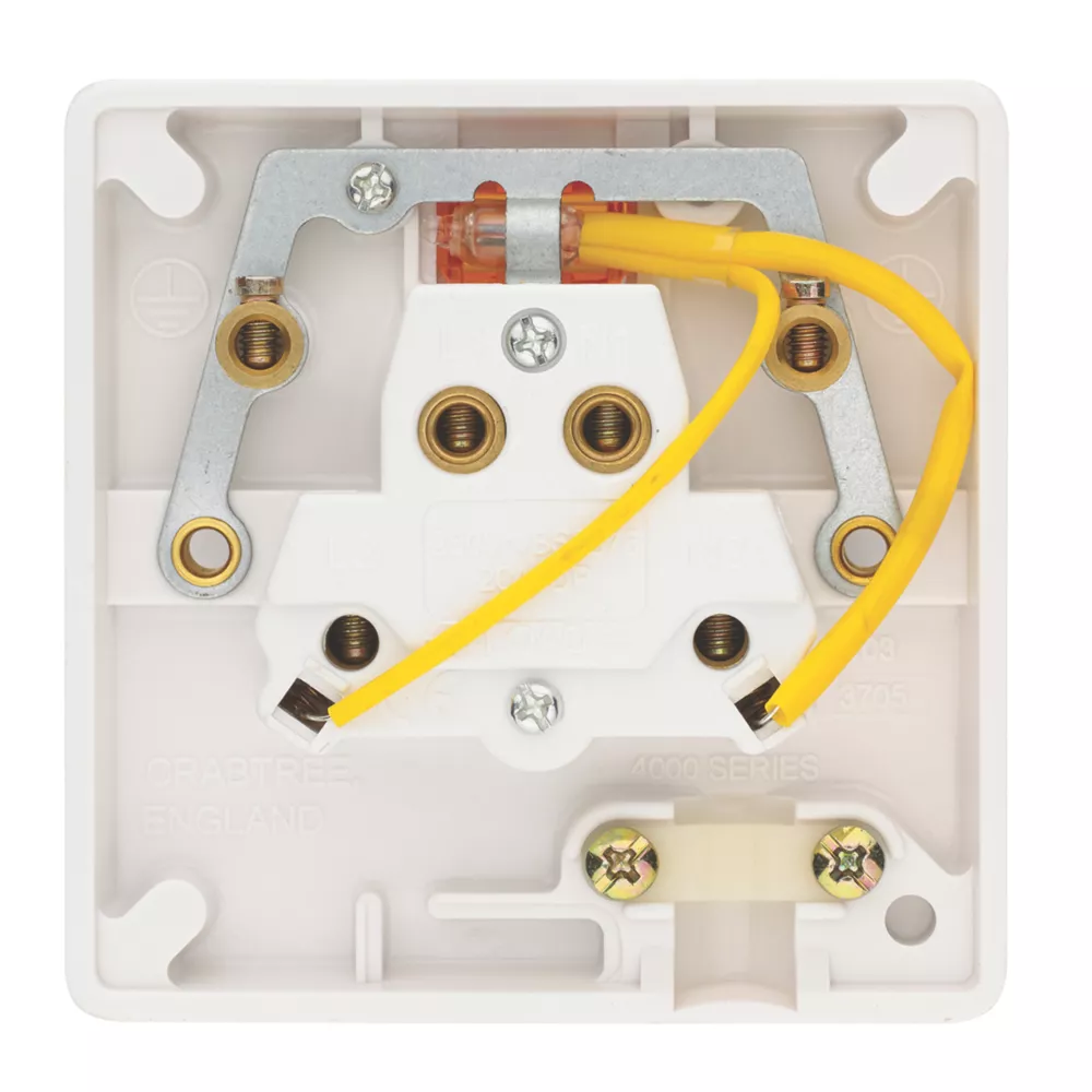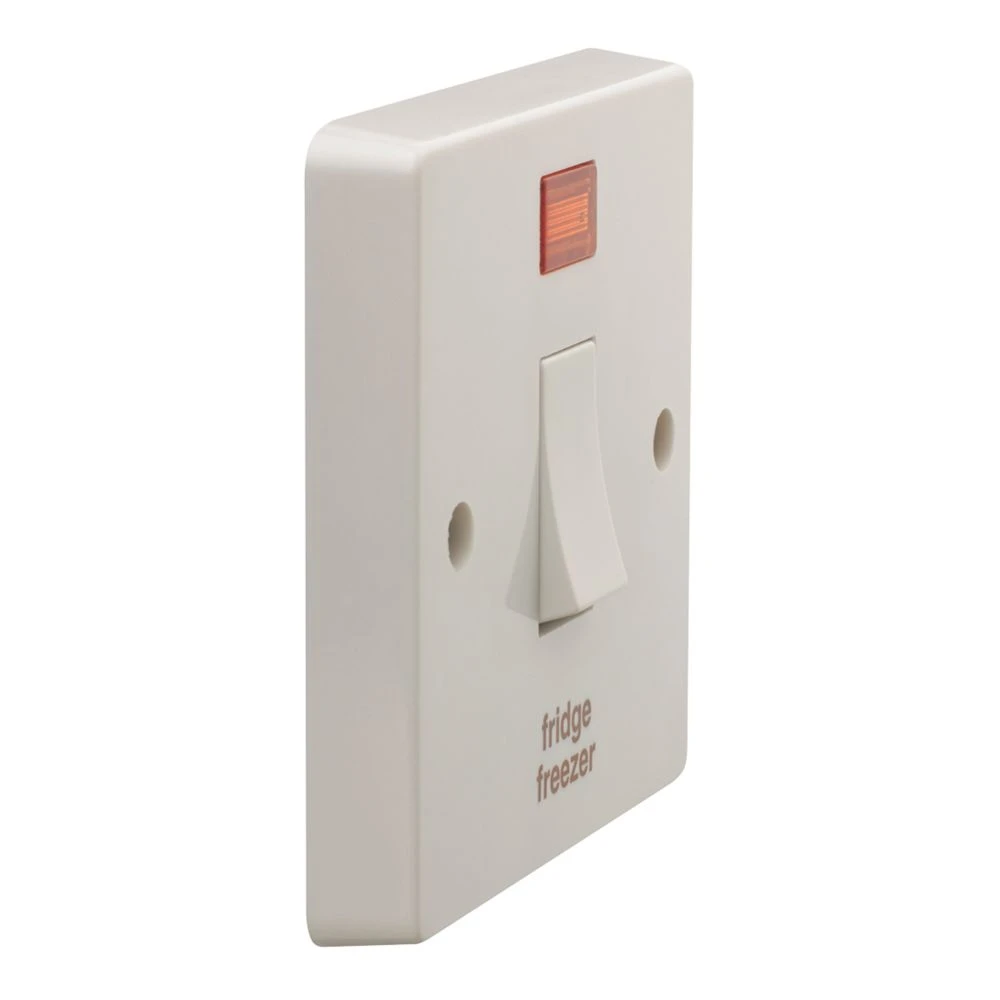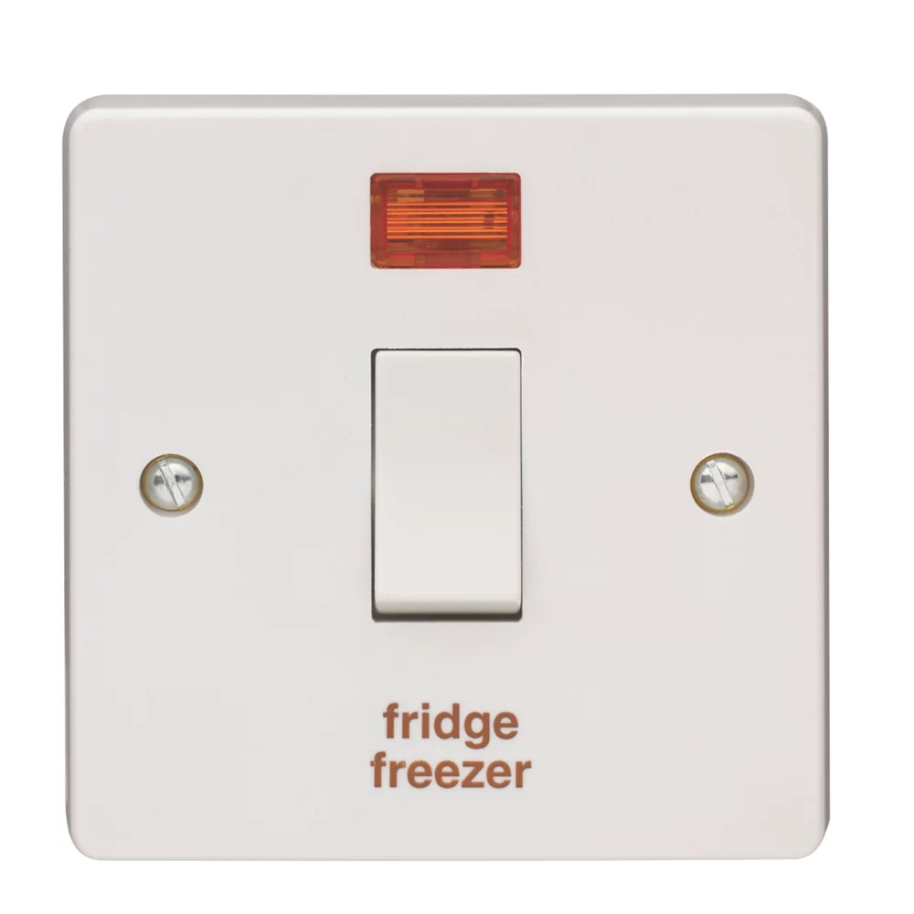 20A double pole switch with neon indicator. Marked ‘fridge freezer’.