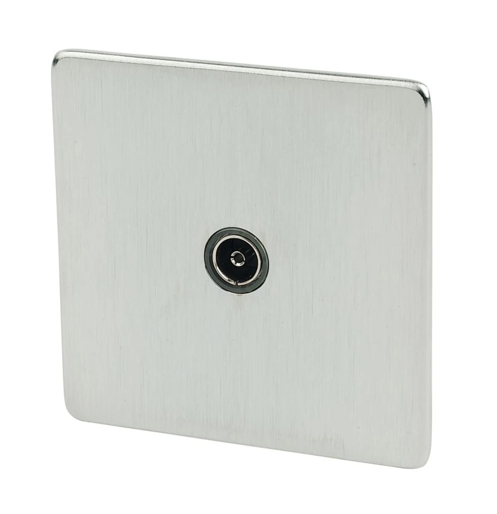 Stylish, flat plate design with screwless metal front plate and concealed fixing screws. Interior fixes in place first, allowing neater decoration around product before fitting clip-on front plate.