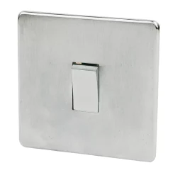 Stylish flat plate design with screwless metal front plate and concealed fixing screws. Interior fixes in place first, allowing neater decoration around product before fitting clip-on front plate.