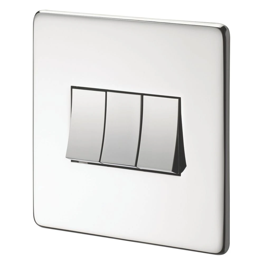 Stylish flat plate design with screwless metal front plate and concealed fixing screws. Interior fixes in place first, allowing neater decoration around product before fitting clip-on front plate.