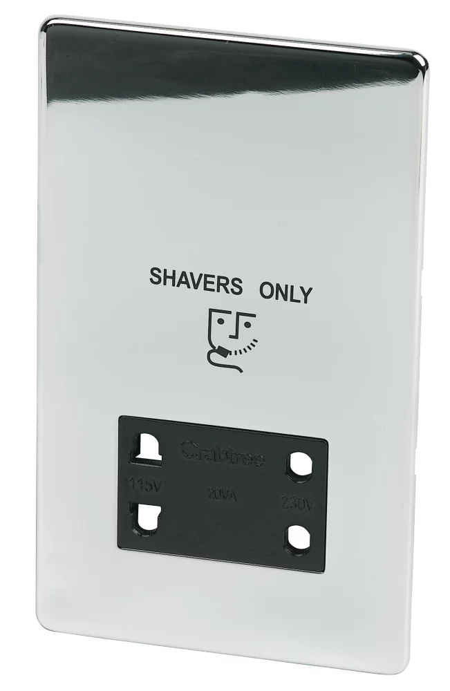 Stylish, low profile design with screwless metal front plate. Interior fixes in place first, allowing neater decoration around product before fitting clip-on front plate. Dual voltage allows choice of either 115V or 230V. Concealed fixings.