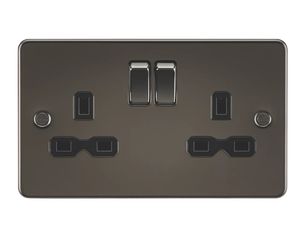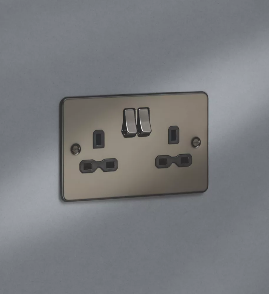 Flat plate design constructed from premium grade steel, with matching metal rockers. Socket inserts are completely hidden when plug is inserted. Built-in gasket.
