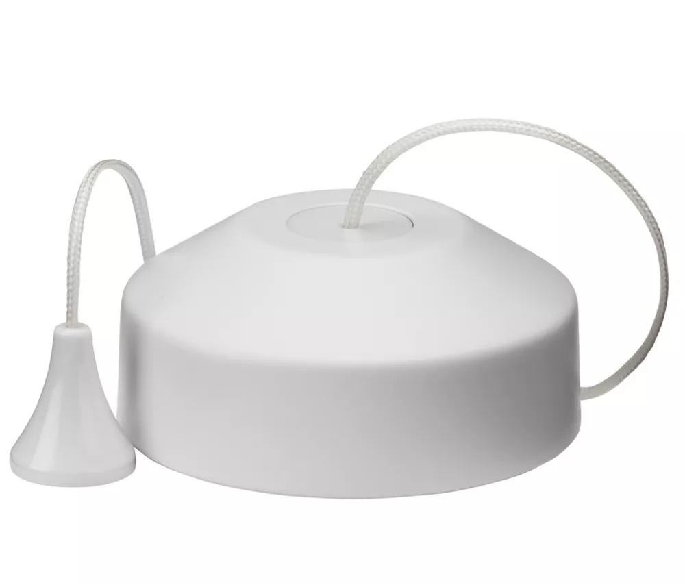 2-way, decorative metal ceiling pull switch for controlling lighting in bathrooms and washrooms. Features 1.5m cord and matching decorative pull-cord tip.