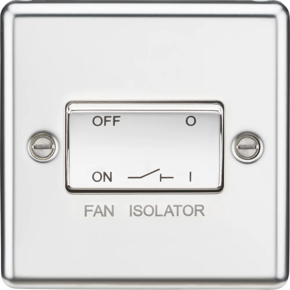 Raised, rounded-edge metal design with built-in gasket. Provides a safe and simple method of isolating fan units in rooms such as en-suite bathrooms, family bathrooms, utility rooms and store rooms. Matching metal rocker.