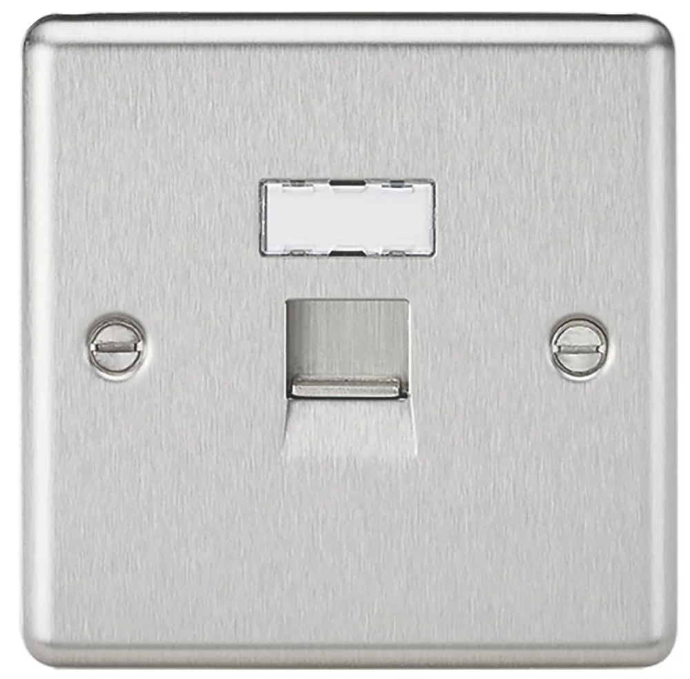 Raised, rounded-edge metal design socket with IDC terminals (tool included). Built-in gasket. Ideal for creating wired networking points around the home. Supplied with write-on designation label.