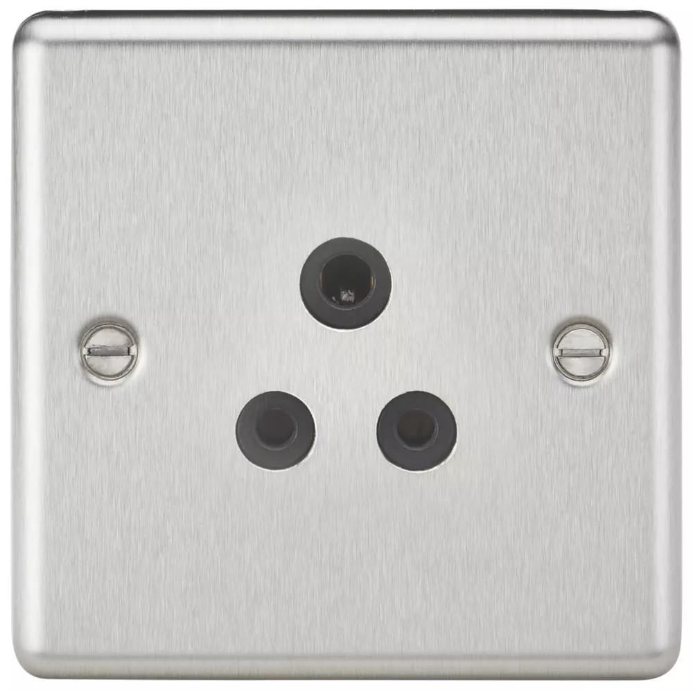 Round pin socket with built-in gasket. Raised, rounded-edge metal design. Ideal for use in custom lighting solutions.