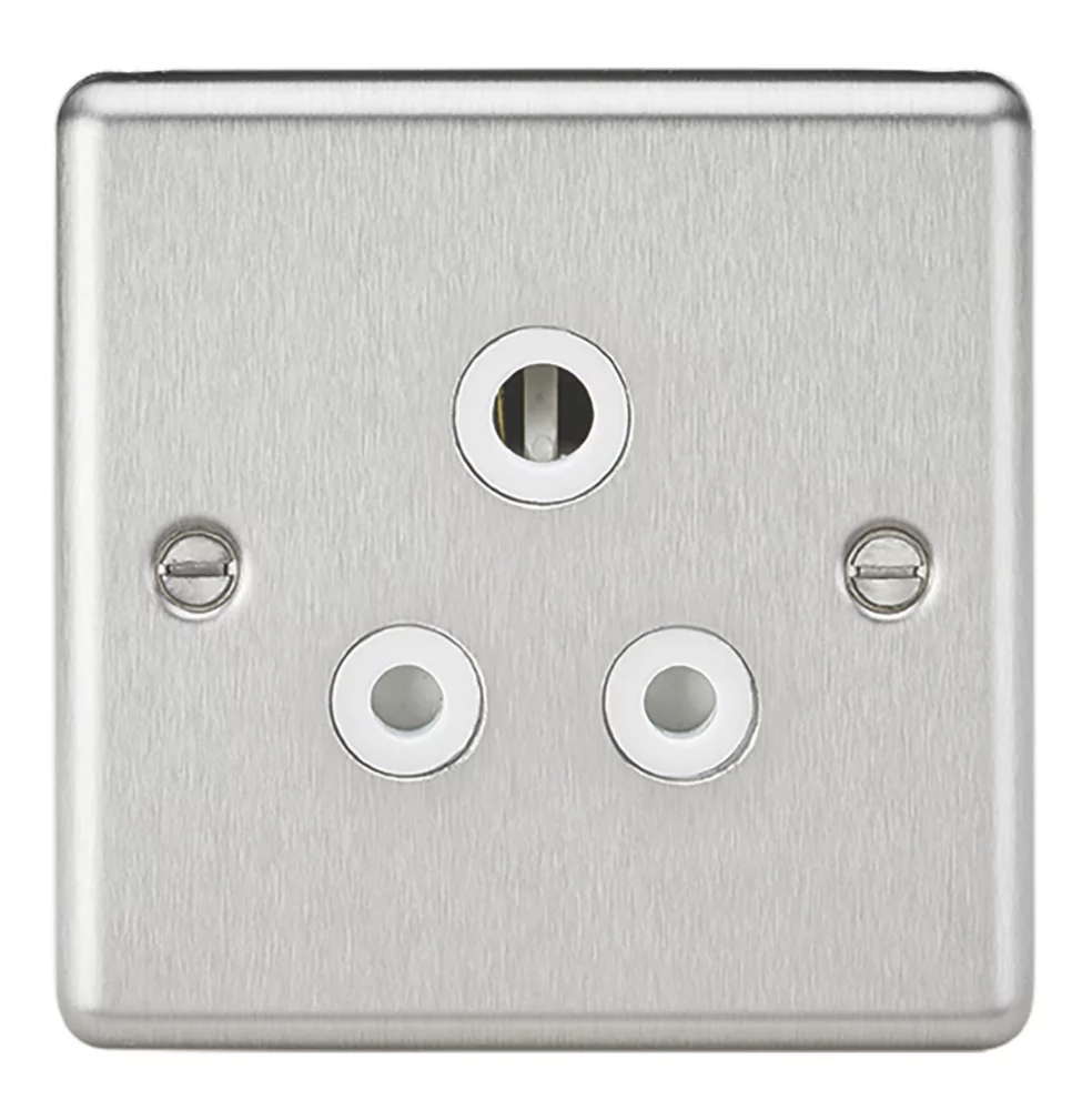 Round pin socket with built-in gasket. Raised, rounded-edge metal design. Ideal for use in custom lighting solutions.