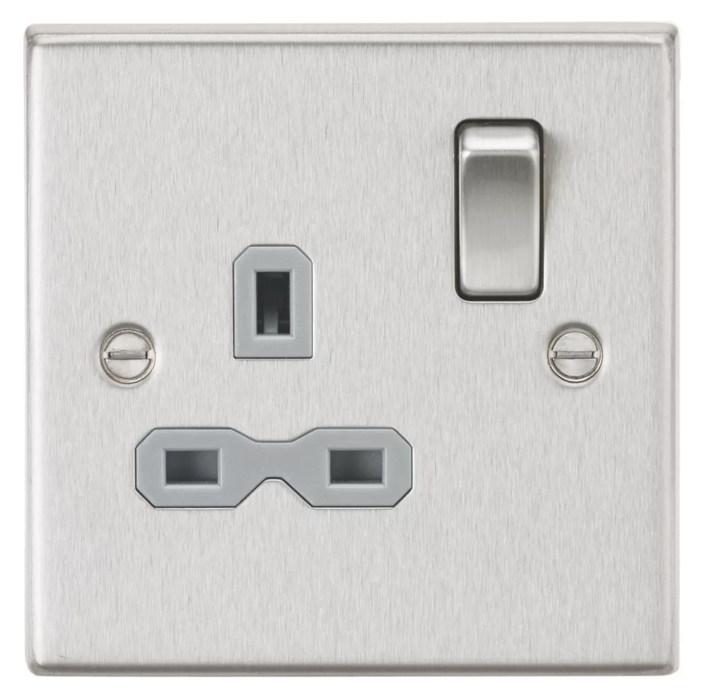 British General Nexus Metal 13A 1-Gang DP Switched Plug Socket Brushed Iridium With Black Inserts