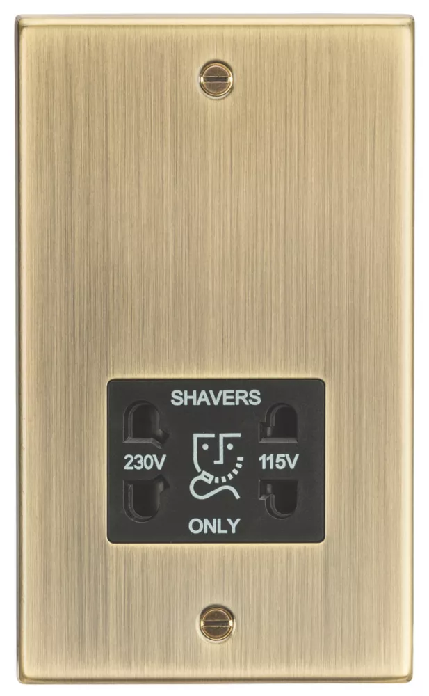 Raised, square-edge design dual voltage shaver socket. Ideal for bathroom upgrades.