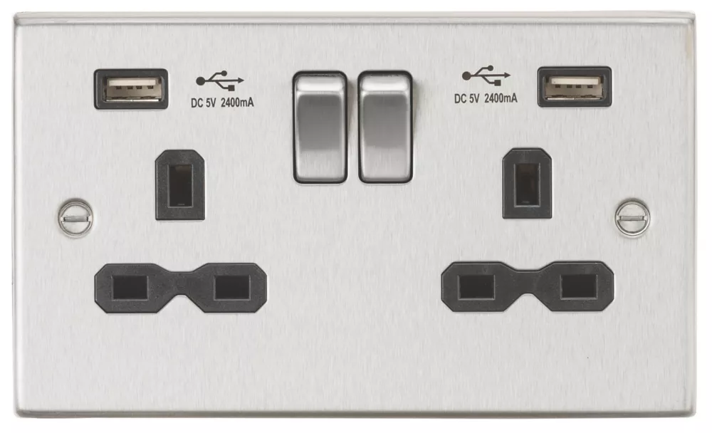 Knightsbridge FPR9000BC 13A 2-Gang DP Switched Double Socket Brushed Chrome With Black Inserts