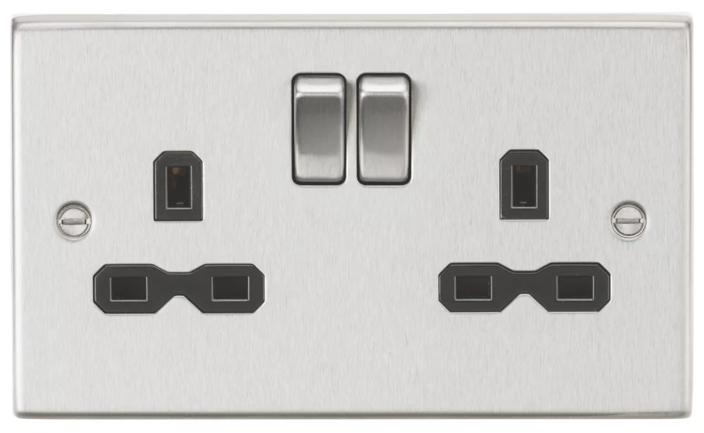 Raised, rounded-edge design constructed from premium grade steel, with matching metal rockers. Socket inserts are completely hidden when plug is inserted. Built-in gasket.
