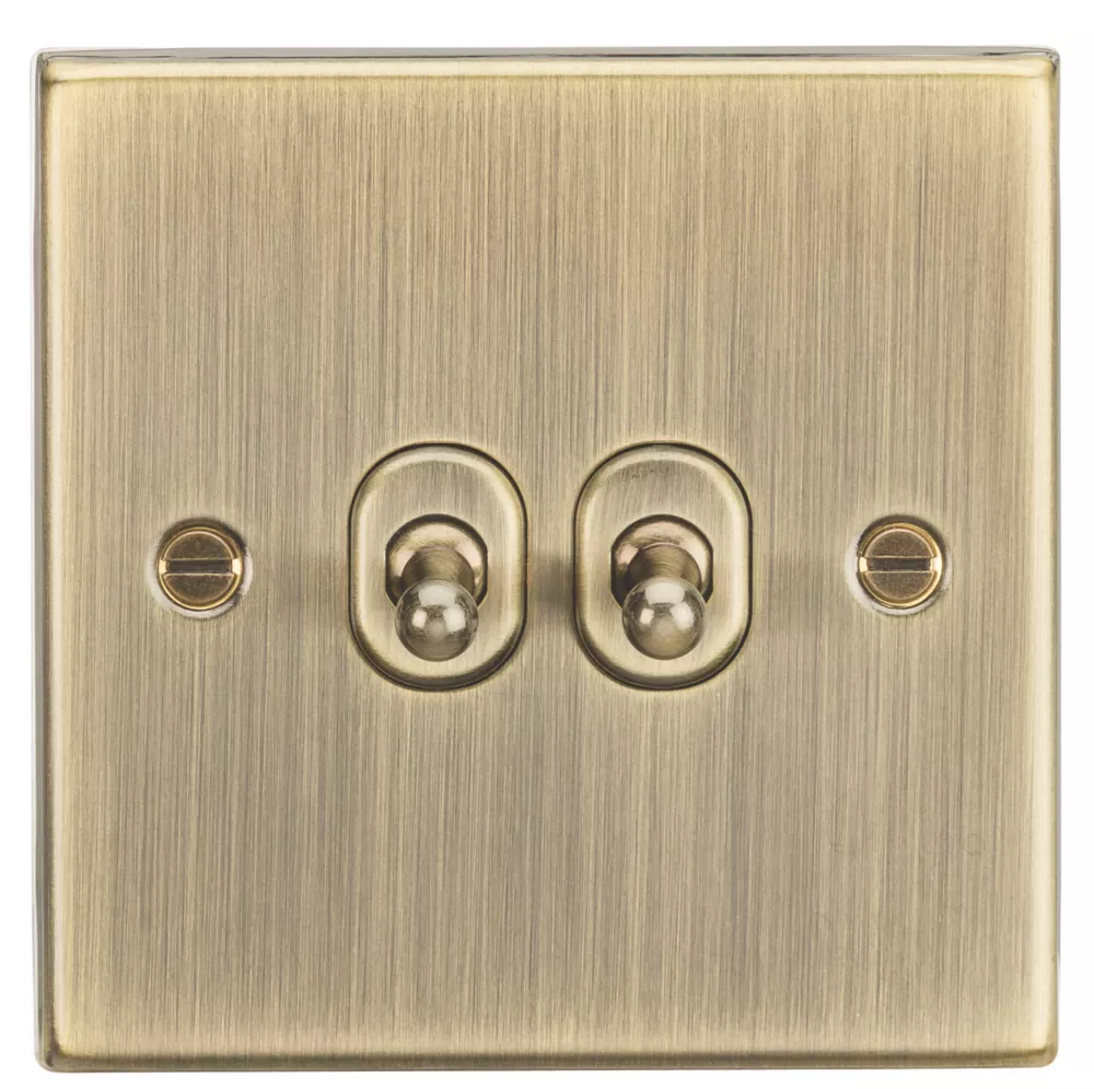 Raised, rounded-edge metal design with matching metal toggle switches.