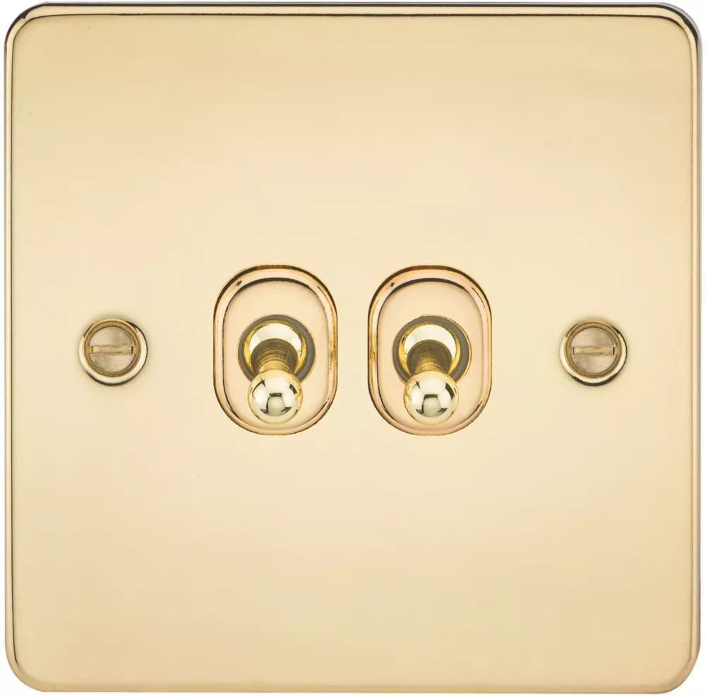 Raised, rounded-edge metal design with matching metal toggle switches.