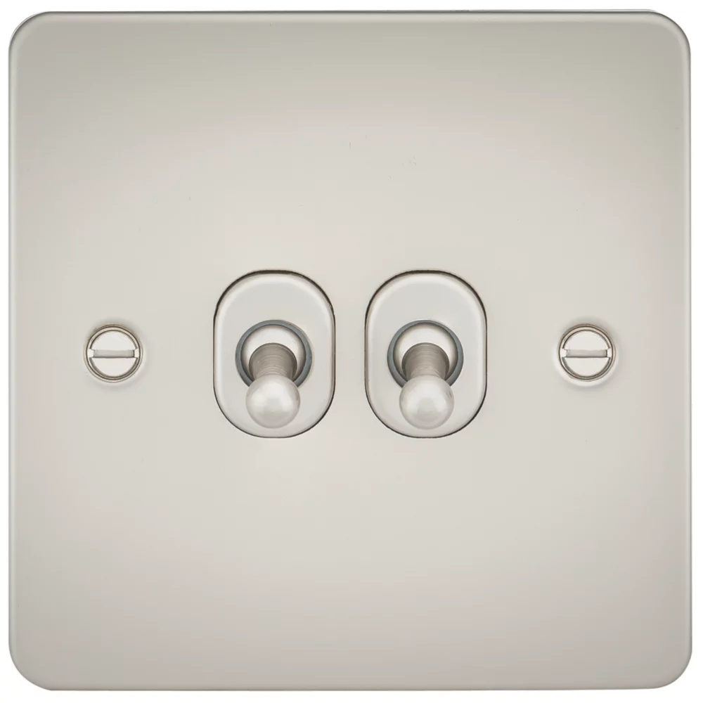 Raised, rounded-edge metal design with matching metal toggle switches.