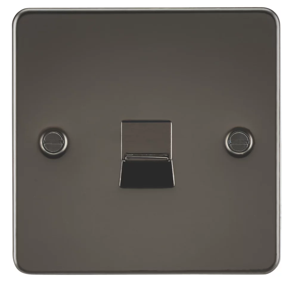 Flat plate, low profile design secondary/extension telephone socket with screw type terminals and built-in gasket. Standard BT-type socket.