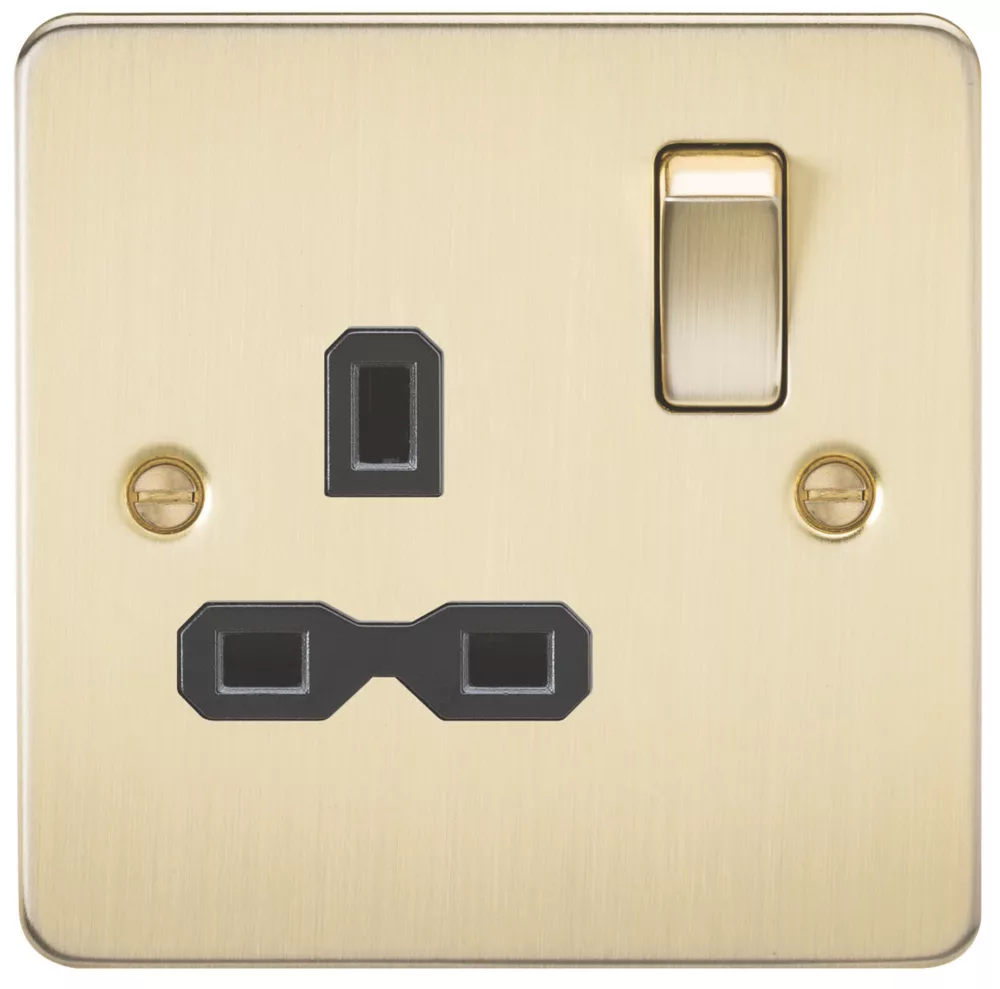 British General Nexus Metal 13A 1-Gang DP Switched Plug Socket Brushed Iridium With Black Inserts