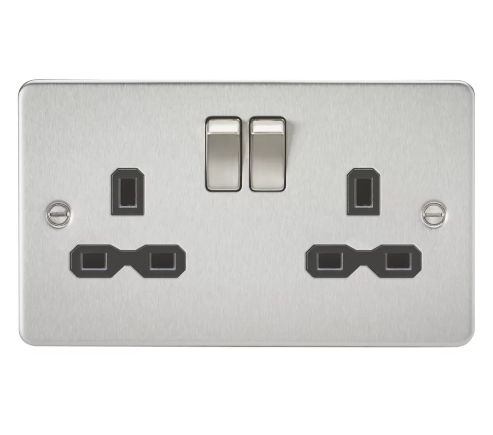 Flat plate design constructed from premium grade steel, with matching metal rockers. Socket inserts are completely hidden when plug is inserted. Built-in gasket.