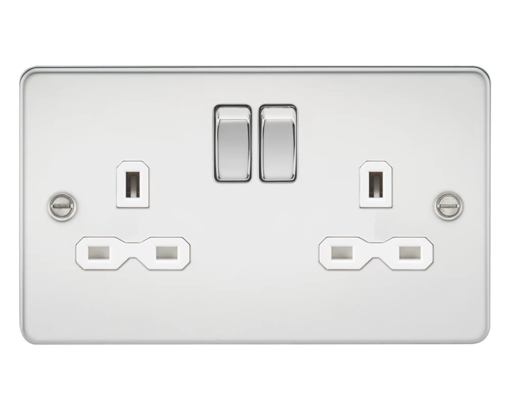 Schneider Electric Lisse Deco 13A 1-Gang SP Switched Plug Socket Polished Chrome With Black Inserts