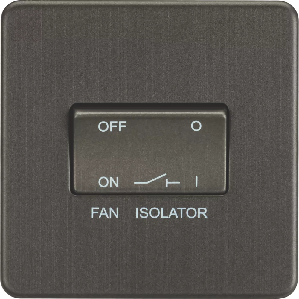 Screwless low profile metal design with built-in gasket. Provides a safe and simple method of isolating fan units in rooms such as en-suite bathrooms, family bathrooms, utility rooms and store rooms. Matching metal rocker.