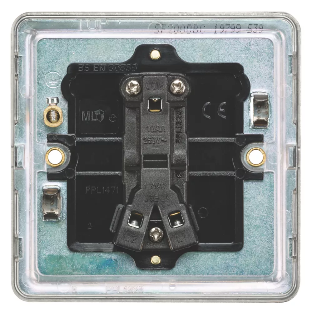 Knightsbridge FPR9000BC 13A 2-Gang DP Switched Double Socket Brushed Chrome With Black Inserts