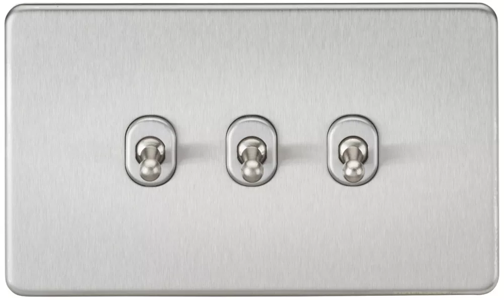 Screwless, flat plate design with matching toggle switches. Ideal for use where there are 2 switches each requiring control of the lighting in a room.