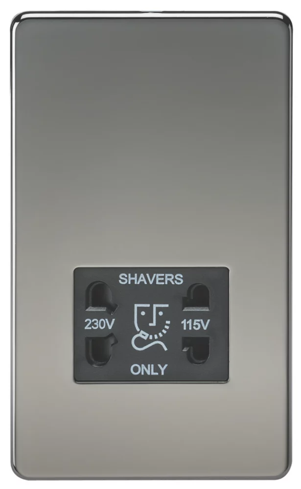 Screwless, flat plate, design dual voltage shaver socket. Ideal for bathroom upgrades.