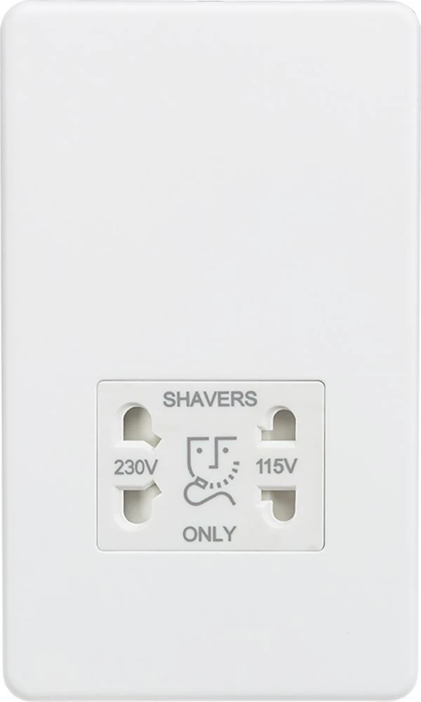 Screwless, flat plate, design dual voltage shaver socket. Ideal for bathroom upgrades.